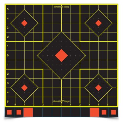 Birchwood Casey 34202 Shoot-N-C Reactive Target Kit Self-Adhesive Paper Black/Yellow 12″x12″ 5-Diamond 4 Pack