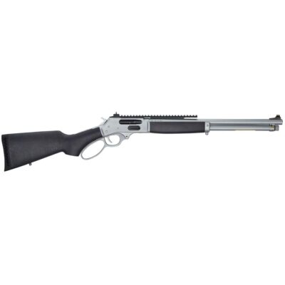 Henry All-Weather Lever Action Side Gate Rifle .45-70 4rd Magazine 18.43″ Barrel Black Stained Hardwood and Silver with Picatinny Rail
