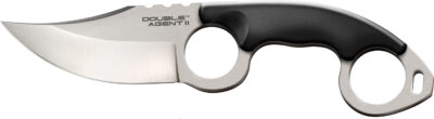 Cold Steel CS39FN Double Agent ll 3″ Fixed Plain Satin AUS-8A SS Blade Black w/Double Ring Griv-Ex Handle Includes Bead Chain Lanyard/Sheath