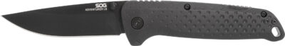 S.O.G SOG13110143 Adventure LB 3.50″ Folding Drop Point Plain Black TiNi 5Cr15MoV Blade, Black Textured GRN Handle