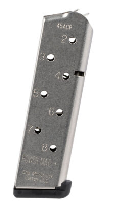 CMC Products 14132 Power Mag 8rd 45 ACP Fits 1911 Officer Stainless Steel w/ Black Base Pad