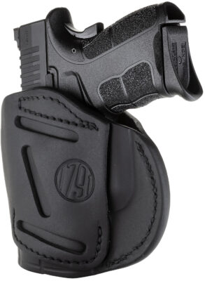1791 Gunleather 4WH4SBLR 4-Way IWB/OWB Size 04 Stealth Black Leather Belt Clip Compatible w/Glock 26/Springfield XD/XDS/S&W M&P Shield Plus Right Hand