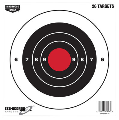 Birchwood Casey 37826 EZE-Scorer 8″ Bullseye Paper Hanging Black/Red 26 Per Pkg