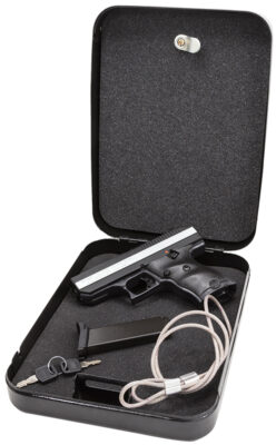 Hi-Point CF380HSP CF Home Security Package 380 ACP 8+1, 3.50″ Black Steel Barrel, Black Powder Coated/Chrome Serrated Steel Slide, Black Polymer Frame & Grip, Keyed Lock Box