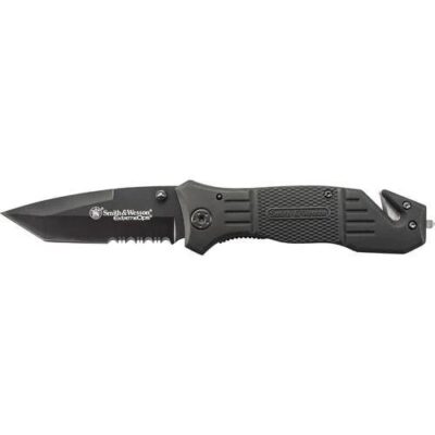 Smith & Wesson First Responder Folding Knife 3-3/10″ Serrated Drop Point Blade Black Silver