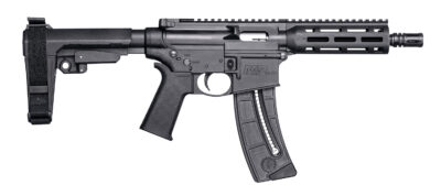 Smith & Wesson 13321 M&P15 Pistol 22 LR 8″ Black Carbon Steel Barrel 25+1, Black SB Tactical SBA3 Adjustable Arm Brace Stock, Black Magpul MOE Grip, Manual Safety, Optics Ready