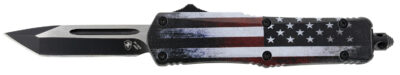 Templar Knife SUS231 Gen II US Flag Small 2.69″ OTF Tanto Plain Black Oxide Stonewashed 440C SS Blade, 4.31″ US Flag Aluminum Handle, Glass Breaker