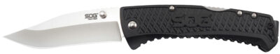 S.O.G SOG-TD1011-C Traction 3.50″ Folding Clip Point Plain Satin 5Cr13MoV SS Blade Black Textured GRN Handle Includes Pocket Clip