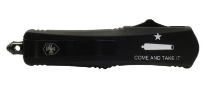 Templar Knife LCATI331 Gen II Come And Take It Large 3.50″ OTF Drop Point Plain Black Oxide Stonewashed 440C SS Blade, 5.25″ Black “Come And Take It” Aluminum Handle, Glass Breaker